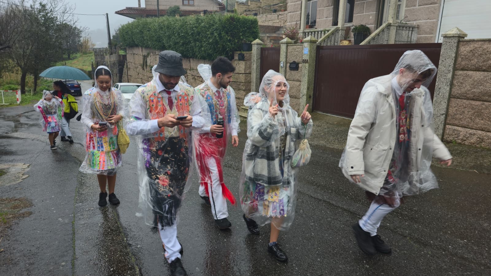 O Entroido de Cobres volve amosar hoxe a forza dunha tradición que non entende de inclemencias nin de renuncias. A choiva, persistente ao longo da xornada, non é quen de deter á mocidade encargada de dar vida ás madamas e galáns, que decidiu manter o programa previsto con absoluta determinación. A súa actitude converteuse nun símbolo da resistencia cultural dunha parroquia que leva séculos defendendo o seu xeito único de celebrar o Entroido.