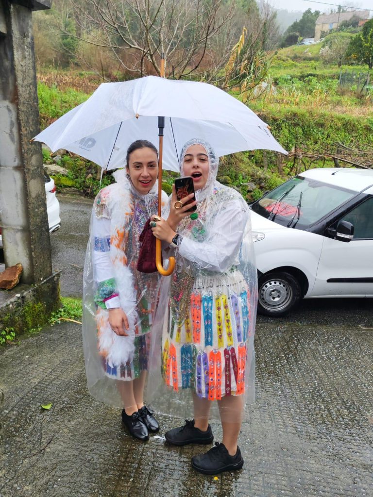 Co obxectivo de preservar os traxes —auténticas pezas de artesanía que forman parte do patrimonio inmaterial galego— a Asociación Cultural Cobres adquiriu chuvasqueiros transparentes que permitirán protexer cada cinta e cada abalorio sen ocultar a esencia da indumentaria tradicional. A esta medida engadíronse as prendas de protección achegadas polos propios integrantes da comitiva, nun exercicio colectivo de responsabilidade e orgullo que reafirma a mensaxe que hoxe percorre Cobres: o Entroido é imparable.
