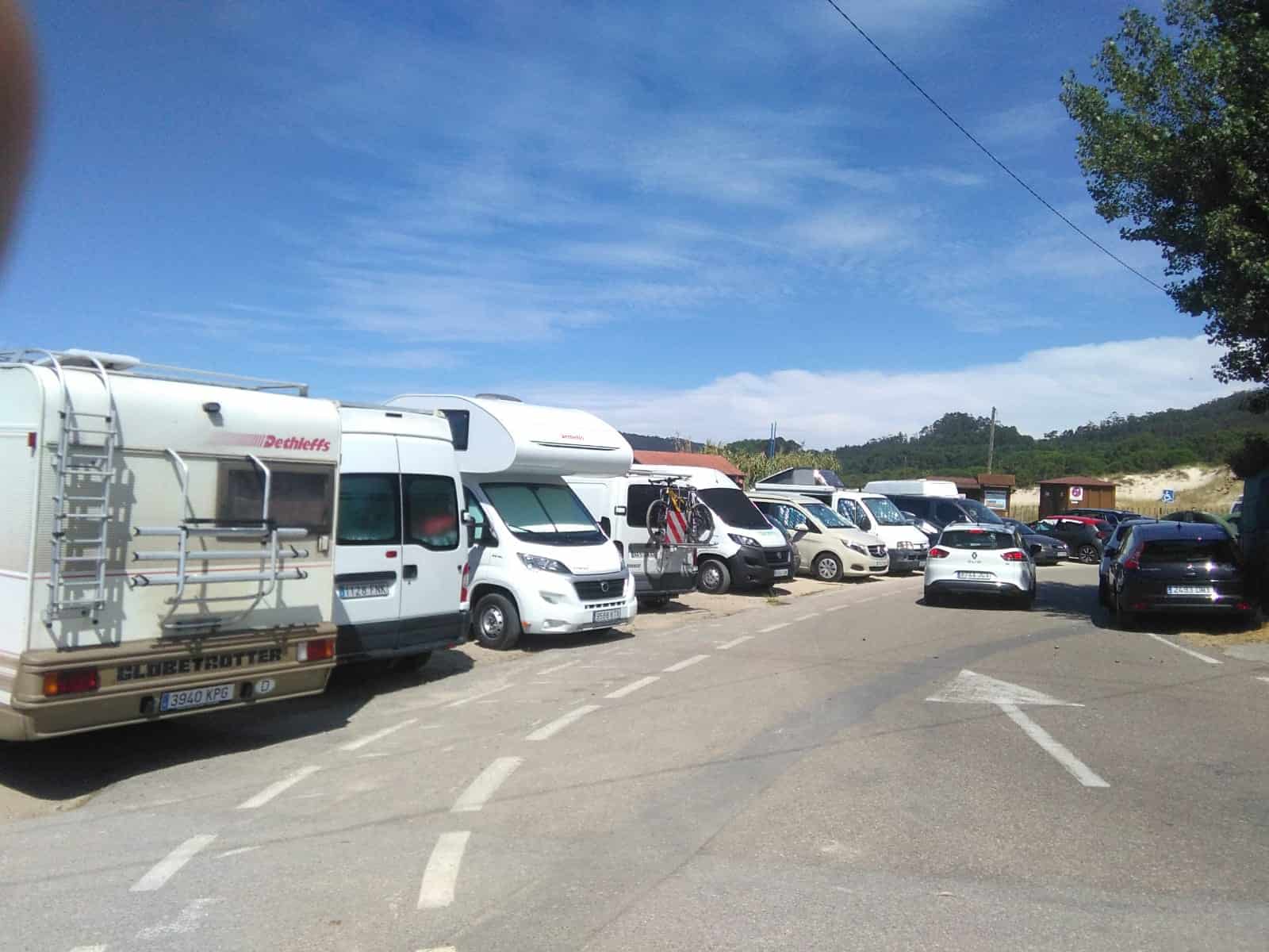 Caravanas aparcadas en primera línea de playa en Cangas.