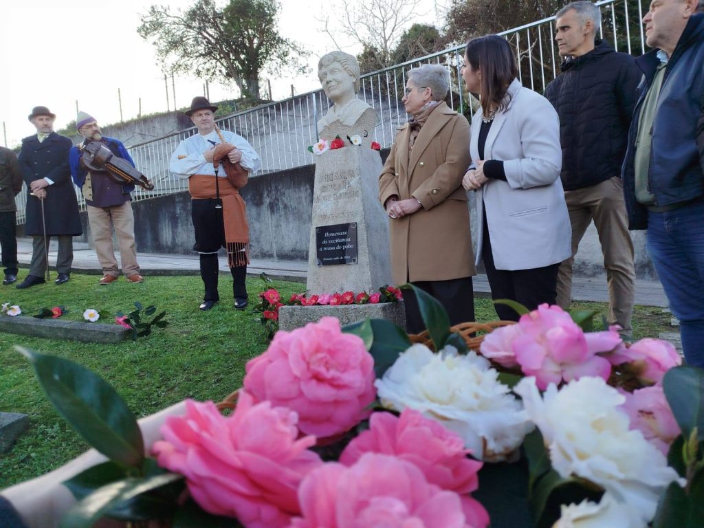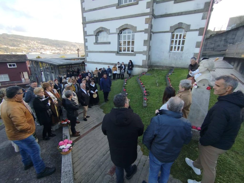 La parroquia de Domaio vivió ayer su tradicional homenaje a Rosalía de Castro. Lo hizo ante el busto de la escritora, situado junto al edificio del centro social de la parroquia. Tras la ofrenda de camelias por parte de ,a Asociación de Mulleres Poza da Moura, la interpretación del grupo de teatro de la Asociación Cultural Charaviscas, las poemas de las Cantereiras Arco da Vella y la interpretación teatral de Os Quinquilláns como hilo conductor, se vivió el estreno de la Xota da Soidade dedicada a Rosalía y creada por el maestro de la Escola de Música de Moaña, Manuel Carballo Pastoriza, e interpretada por Árdora, de la Asociación de Mulleres de Moaña.