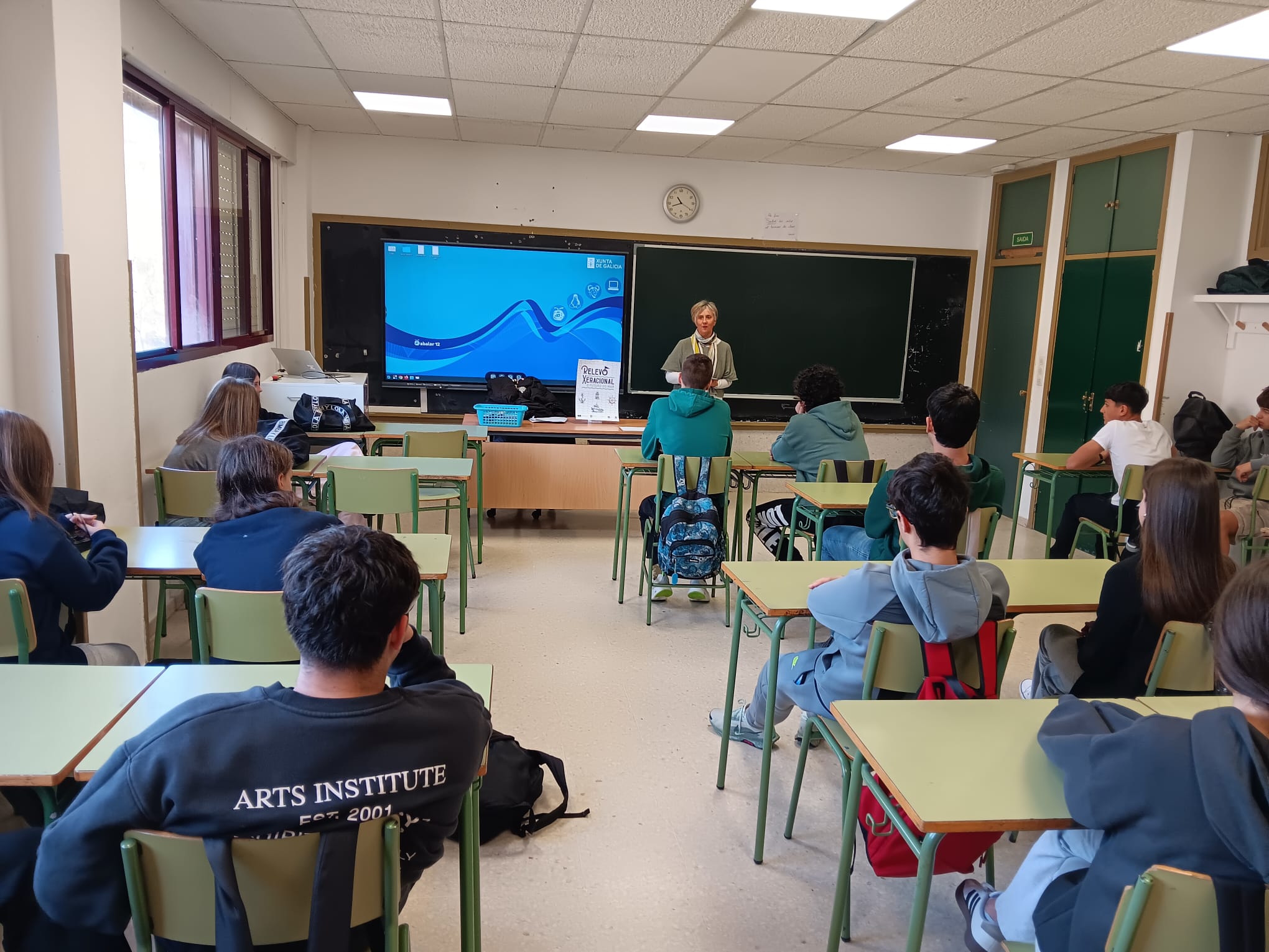 El Galp Ría de Vigo-A Guarda trasladó ayer su formación a los alumnos de 4º de la ESO del IES As Barxas de Moaña para informar a las futuras generaciones de las diferentes salidas profesionales relacionadas con el mar en la ría de Vigo, una iniciativa apoyada por la Consellería do Mar y cofinanciada por el FEMPA dirigida a acercar el sector del mar a las aulas y fomentar las vocaciones profesionales vinculadas a él.