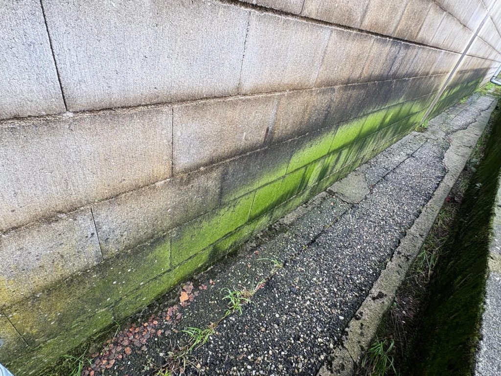 Y es que existe un serio riesgo de que la estructura del pabellón esté dañada por la continua entrada de agua y la condensación, que convierte el suelo en una pista de hielo. Los muros están visiblemente encharcados de humedad y su base la cubre un manto de musgo verdoso. Aunque todas las paredes presentan daños aparentes, una de ellas cedió “cuatro o cinco dedos”, comentaba González con el director del colegio, Félix Solla, y el conserje del centro. “Se balanceaba”, contaron. Ante esta situación y para evitar su caída se instaló un refuerzo temporal. La corrosión está acabando con la base de las columnas de hierro que soportan el esqueleto, los canalones prácticamente han desaparecido por el paso del tiempo y la falta de limpieza.