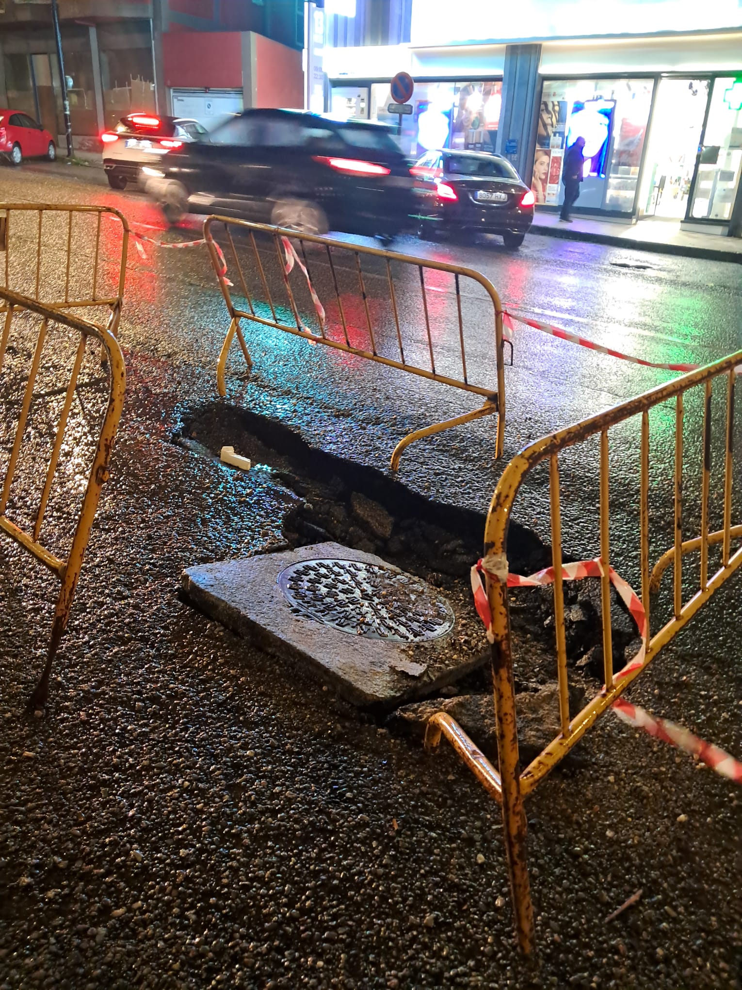 A los numerosos socavones repartidos por toda la Avenida de Bueu y, en general, por el barrio de Pedra Alta, se suma en las últimas horas uno que ha alcanzado un tamaño mucho mayor, hasta el punto de que los vecinos apuntaban a que podría coger parte de un coche. Se abrió esta mañana y está situado solo uno metros después de la rotonda de Pedra Alta, en dirección a Darbo, ocupando parte de la zona reservada para el estacionamiento de vehículos. Ante el riesgo, ha sido vallado y se han inhabilitado los aparcamientos próximos. Los vecinos ya han alertado en numerosas ocasiones del riesgo para peatones y vehículos pero la situación se mantiene.