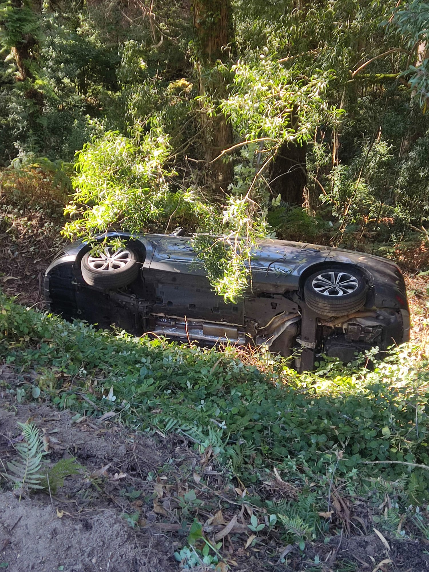 Un vecino de Moaña de mediana edad ha resultado herido leve esta tarde en una salida de vía del vehículo que conducía. Según la Policía Local, el coche se precipitó por un desnivel de unos diez metros a causa de un despiste del piloto, quedando en medio de regato que vertebra esta zona de monte.