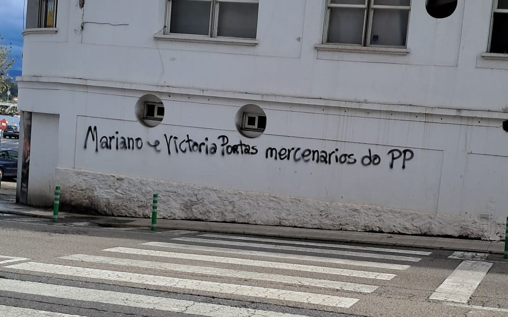 La situación política en Cangas nunca ha sido fácil y ha vivido numerosos episodios de tensión a lo largo de su historia pero quizá el que se está produciendo en este momento podría calificarse como el más complicado de los últimos años. Con un gobierno en minoría que se resiste a negociar con la mayoritaria oposición el voto que le falta para sacar adelante sus propuestas, el ambiente no solo se crispa en el salón de plenos sino también en la calle. El miércoles la nave de Iglesias, en Ojea, que el Concello utiliza como nave de Servizos, amanecía tuneada con una pintada en contra de la portavoz de Alternativa dos Veciños (AV), Victoria Portas.