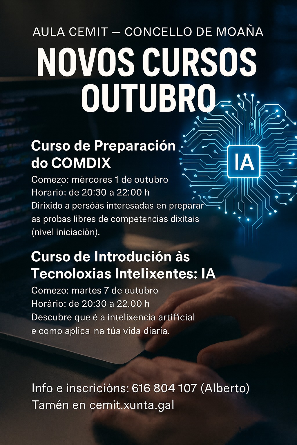 Todas estas accións formativas desenvolveranse na Aula CeMIT de Moaña e teñen como finalidade fomentar a aprendizaxe tecnolóxica, mellorar a empregabilidade e reducir a fenda dixital.