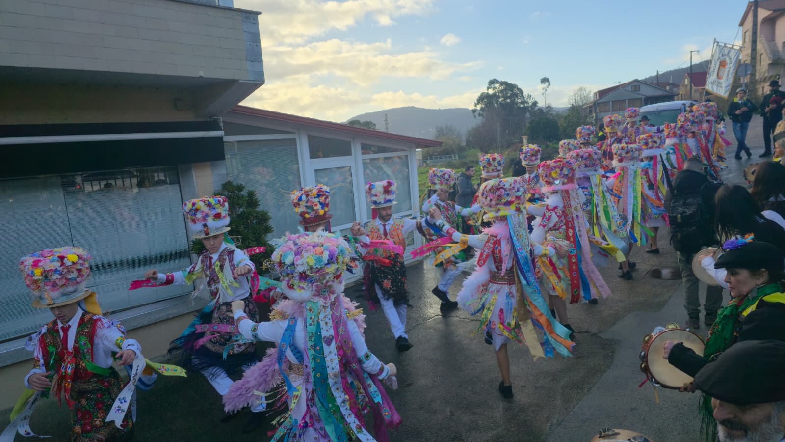 O sol asomou esta mañá coma quen sabe que hoxe é un día especial, iluminando a saída da comitiva do Entroido de Cobres, que ás dez en punto comezou a levar polas rúas a súa danza antiga, esa que esperta lembranzas e fai vibrar á veciñanza. As melodías espalláronse polos barrios como un convite á festa que continuará ata o martes 17 na carpa de Riomaior, onde cada tarde, a partir das 19 horas, madamas e galáns abrirán paso á verbena e ao reencontro.