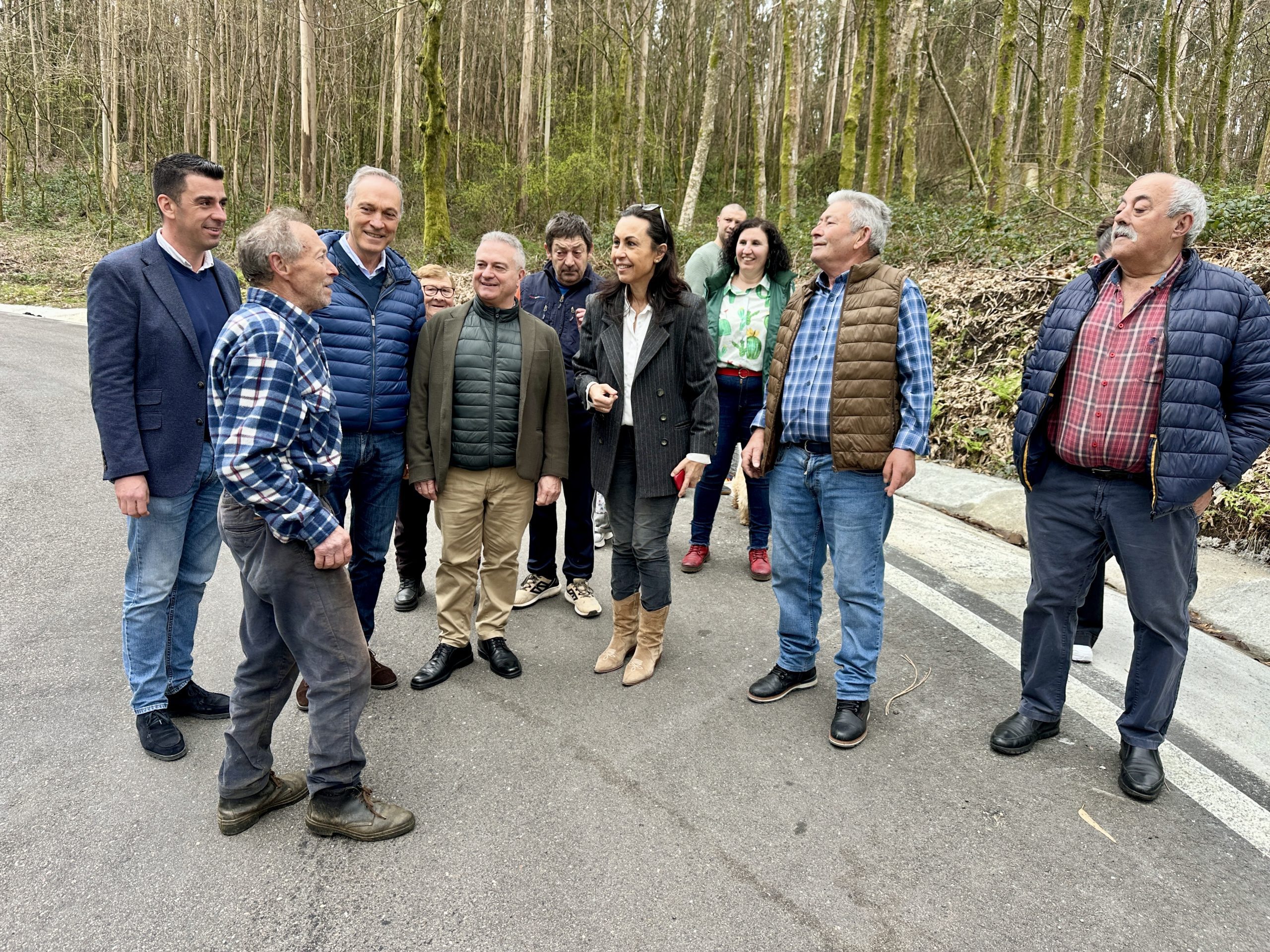 A alcaldesa, María Ramallo, e o concelleiro de Medio Rural, Pablo Novas, acompañados do delegado da Xunta en Pontevedra, Agustín Regueira, e da veciñanza da zona, visitaron as obras de mellora do mantemento da estrada de Pastoriza, por un importe de case 50.000 euros, que se financiarán con cargo a unha subvención do Plan Camiña Rural 2025-2026 da Axencia Galega de Desenvolvemento Rural.