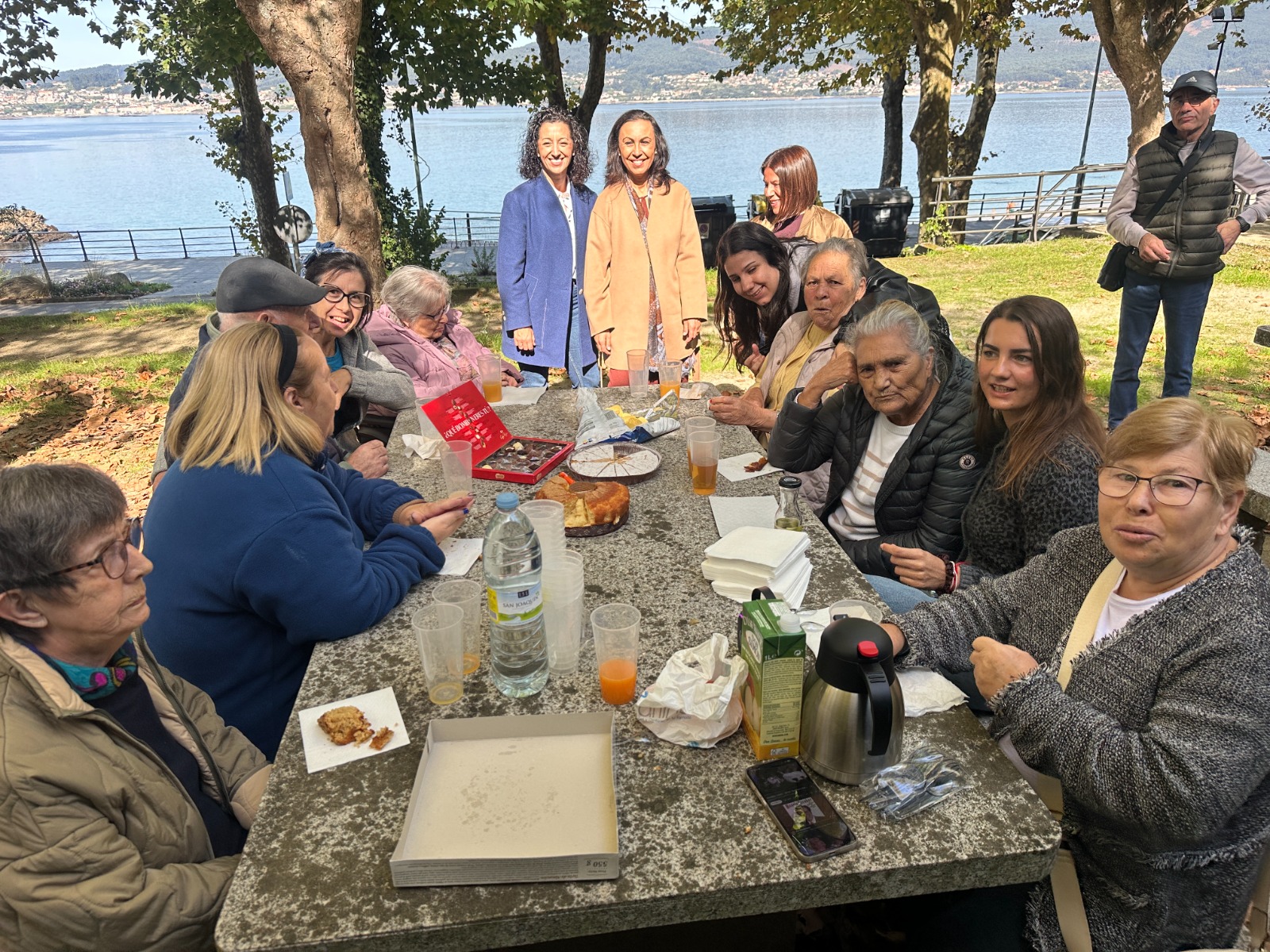 A alcaldesa, María Ramallo, e a concelleira de Benestar Social, Marián Sanmartín, achegáronse onte ata o merendeiro da Praia de Portocelo, onde as persoas usuarias do Centro de Día celebraron, co equipo do centro e as súas familias, unha «merenda» de fin do verán.