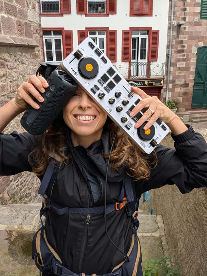 Todavía “aterrizando”, pero no con sus pies, sino “emocionalmente”. Así es como Atlántico cogió a Jasmina, una canguesa que triunfa en redes como ‘Santa Gertrudis’. Y no, no participó en ninguna maniobra de parapente, completó el Camino de Santiago francés pero de una forma muy peculiar. Su cuerpo logró aguantar 33 días andando y, lo más curioso, dándolo todo mientras fluía una de sus pasiones, la música. De peregrina se trasformaba en DJ en cada una de sus paradas de descanso. ‘Santa Gertrudis DJ’ se acabó convirtiendo en fenómeno viral y también vital para quienes se encontraban con el mismo objetivo que ella, culminar su reto en la Praza do Obradoiro desde el país vecino. Sobre ella, como oro en paño, iban su mochila con enseres básicos y una pequeña mesa para pinchar que, pese a su reducido tamaño, lograba sanarle las heridas del camino.