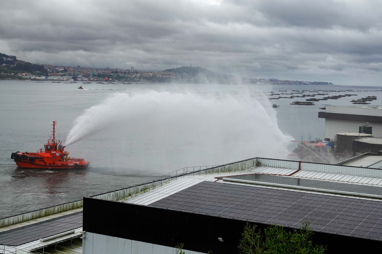 Policía Local, Guardia Civil, Bomberos, 112, Autoridad Portuaria, SEGEM, Guardacostas y Remolcanosa participaron ayer en un simulacro de incendio en las instalaciones de la empresa Wofco-Fandicosta que recordaron al ocurrido en 2016 y que calcinó gran parte de las instalaciones de Domaio.
